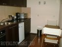 Дневната / трапезария се състои от двоен разтегателен диван, единично канапе, табуретка, холна маса, телевизор и маса за хранене за четирима.Кухнята е напълно обзаведена и оборудвана с фурна, два котлона, абсорбатор, микровълнова печка, хладилник и всички необходими уреди и прибори за хранене.